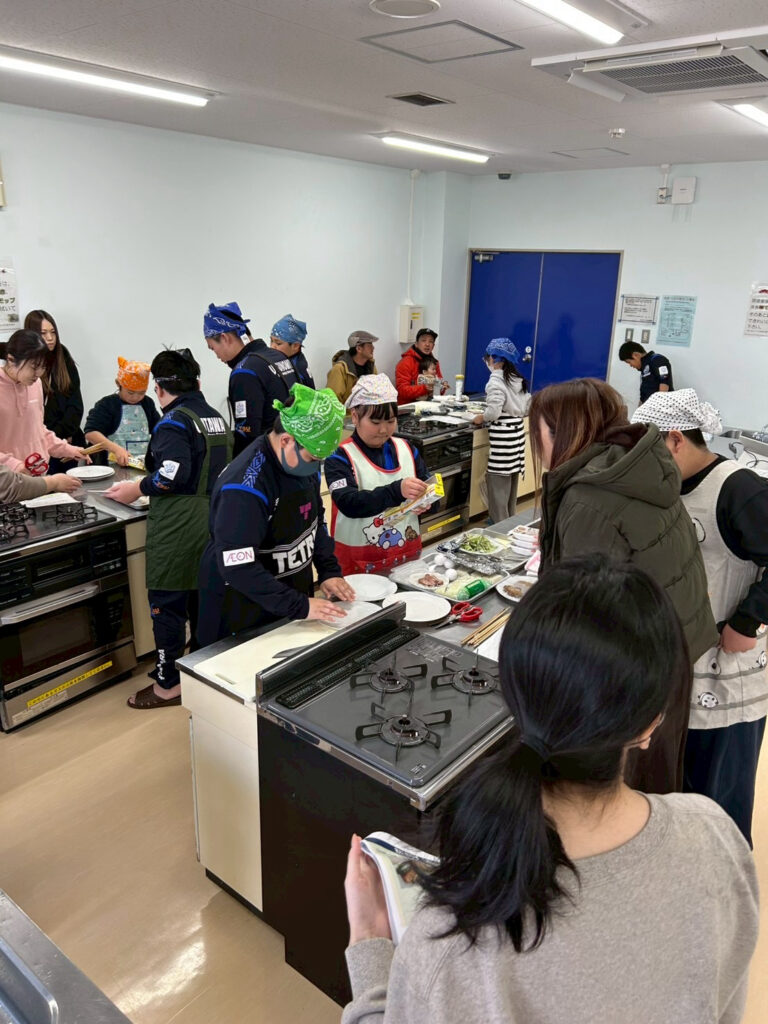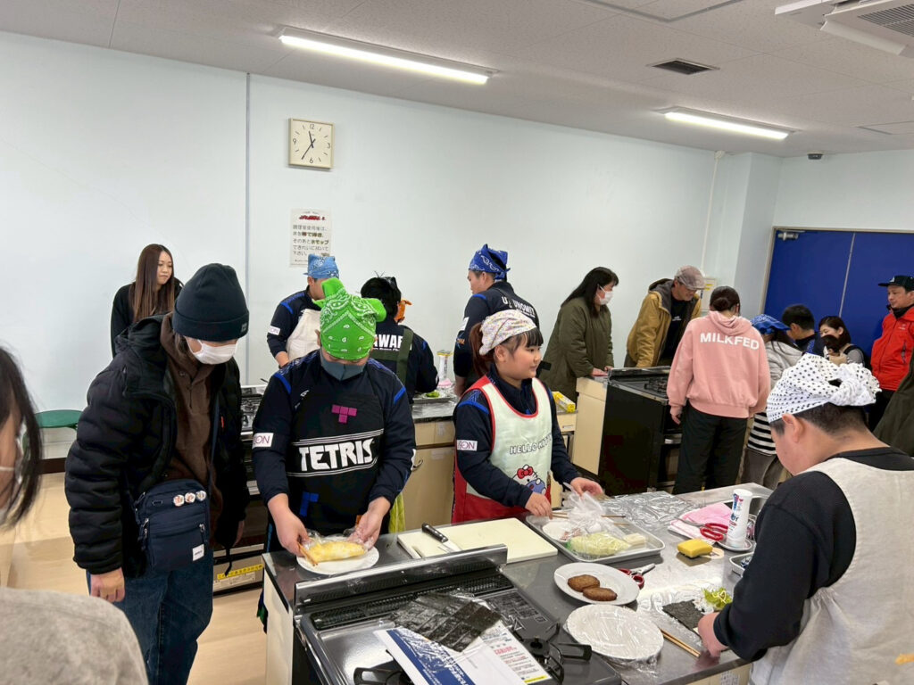 Day.2では、学んだことを活かし調理実習を実施しました。火を使わず、自分たちでも簡単に作れるレシピとして「おにぎらず」「餅入りとん平焼き」を作りました。自主的に、積極的に自宅でも取り組めるようレシピを考案していただき、選手も楽しく学ぶことができました。食事に対する意識や、自分の生活を見直すことができました。