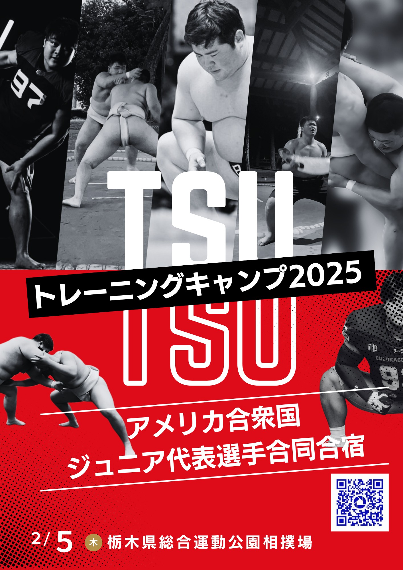 令和8(2026)年2月5日(木)に第16回白鵬杯世界相撲大会アメリカ代表選手団事前練習会を開催します。この事業は全国の舞台で活躍を目指す子ども達に様々な能力開発プログラムを通じて未来のトップアスリートを育成するTSUトレーニングキャンプ2025 の一環として実施いたします。当日は、アメリカ代表選手団5名が県内の小中学生及び高校生、日本体育大学相撲部の学生と合同練習を行います。